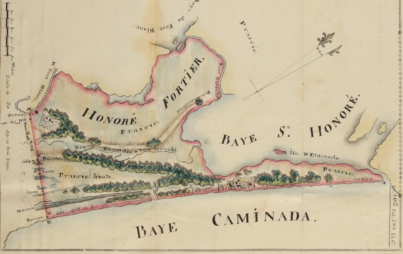 That is quite literally where the Laffites had their base of operations in Barataria. This map is from a letter Honoré sent to Edward Livingston in 1809 or so, related to selling that property. This was just a year or so after Honoré was involved in a trial for smuggling, in which Livingston represented him as his attorney.