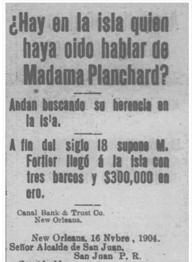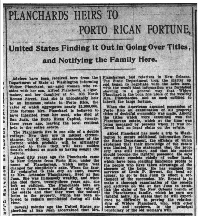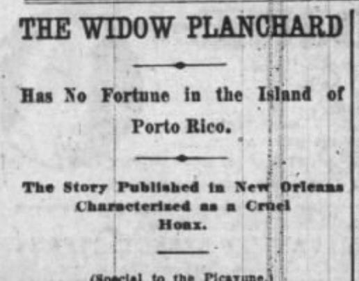 Another article was then published retracting the claims that the Planchards in New Orleans were due any fortune in Puerto Rico.