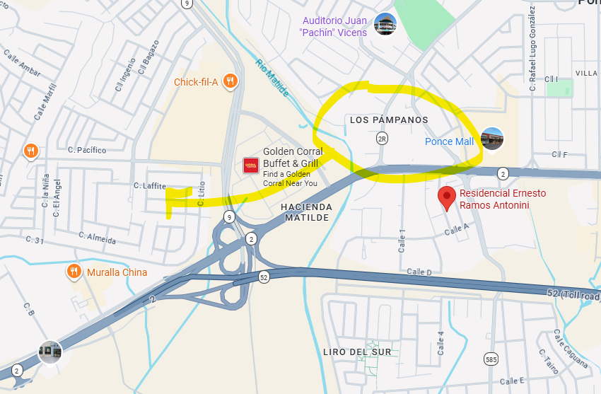 I decided to check out the map of Ponce, Puerto Rico. The first thing I noticed almost immediately was a neighborhood called Los Pámpanos. That is the same name as the hacienda founded by Pedro Gautier; this area is probably the former location of that hacienda. There’s a mall there now, among other things.